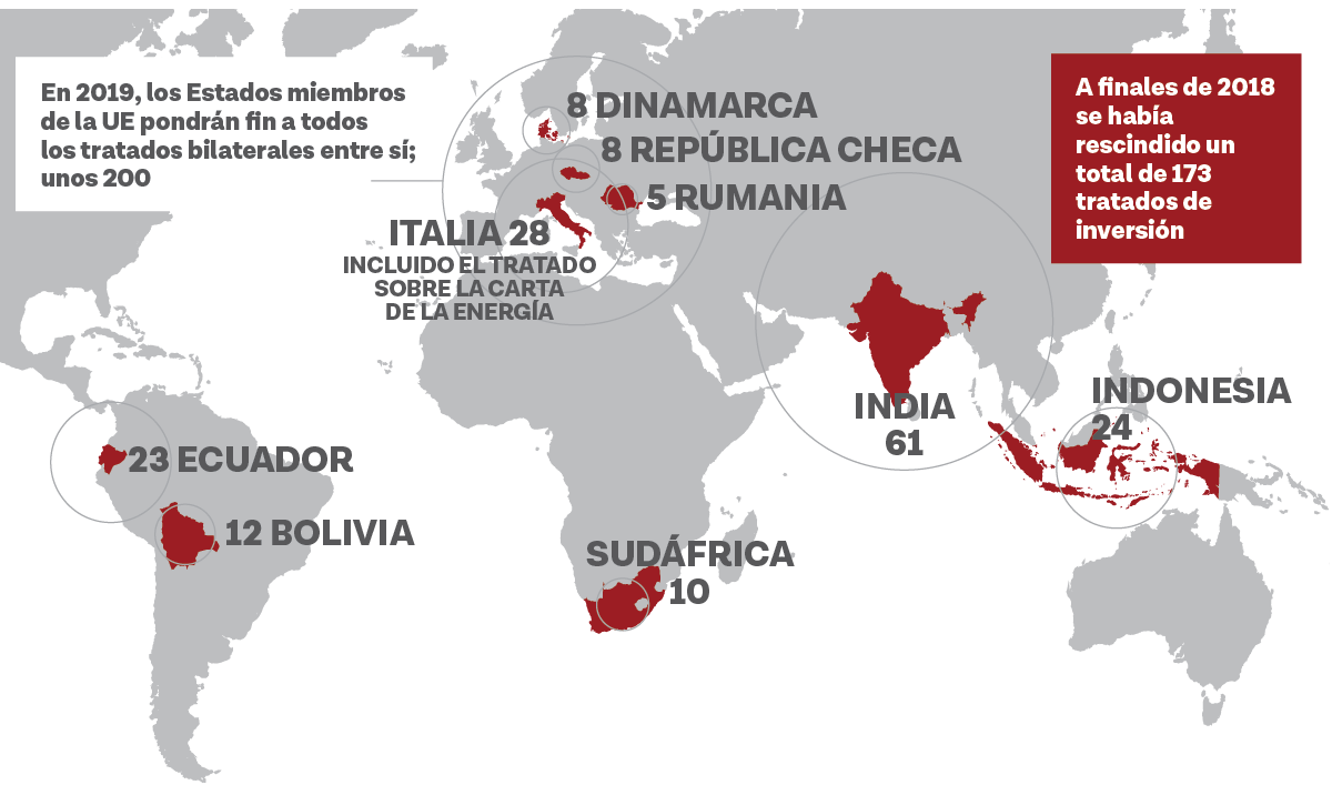 - Para una panorámica de algunos países que han puesto fin a tratados, véase: Public Citizen: Termination of Bilateral Investment Treaties Has Not Negatively Affected Countries’ Foreign Direct Investment Inflows, abril de 2018.